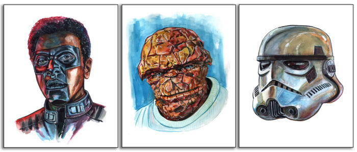 Reproduced from scans of artist Tim Doyle’s original watercolor and mixed media paintings, these are printed on 355 gsm natural cotton rag watercolor paper. Each print normally retails for $20 each- but they’re free with purchase for the rest of the month!